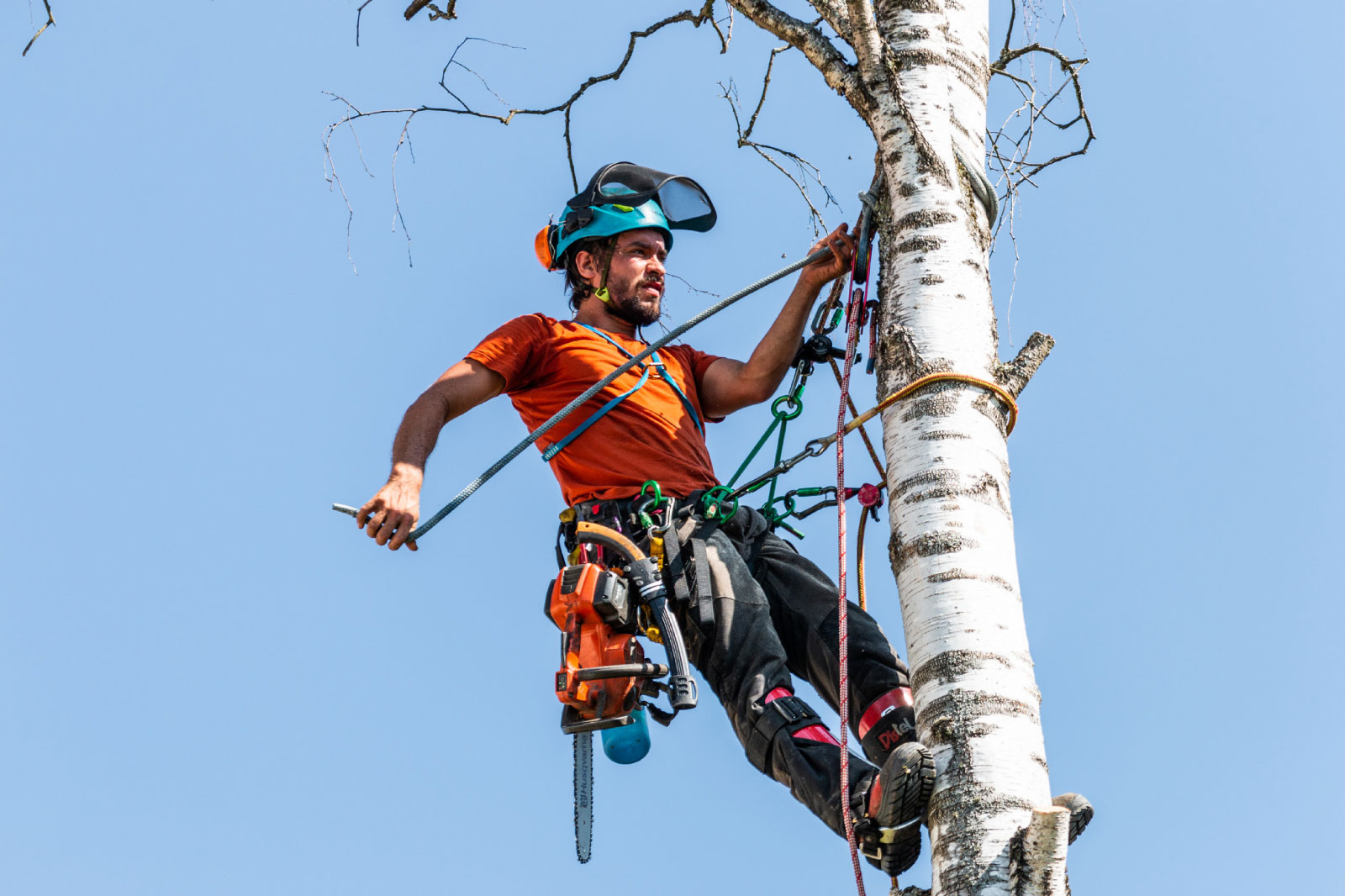 Durch die Seilklettertechnik ist mir auch die Pflege oder Fällung von hohen Bäumen ohne Einsatz von schweren Maschinen möglich.